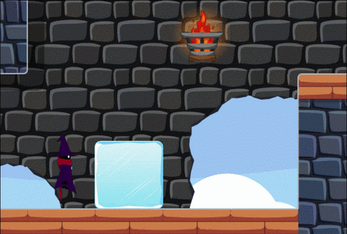 Through your aventure you will encounter four magic powers. Ice, which will let you create ice blocks to reach high places. Fire, to melt ice blocks blocking your way. Wind, to move ice blocks that are on the map. And earth, which will create unbreakable blocks to get to the hardest places.